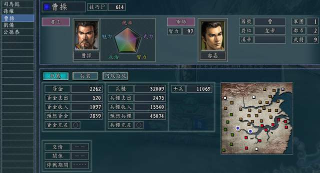 剧情梗概虽然没什么太大意思,不过总得专门用一个篇幅来讲讲,三国志11虎落平阳剧本对于曹操而言到底有多么严峻,相信上一期的文章已经能让大家看得很明白了。本期的任务,就是给各位展示一番在游戏里实际操作的破局流程。