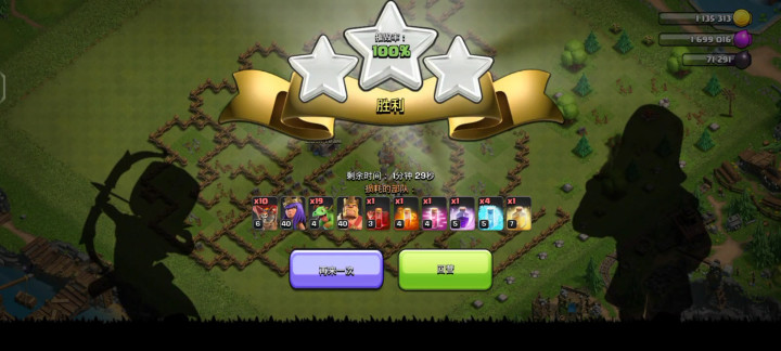 这个挑战其实非常的简单,因为我们要进攻的只是一个10级大本营,另外这个阵型也相对集中,所以对于我们普通玩家来讲几乎没有什么压力,所以这个挑战不管你用“一字划”还是“一点下兵”都是可以轻松通关的,并且奖励还是两瓶“训练药水”我们就相当于白嫖。