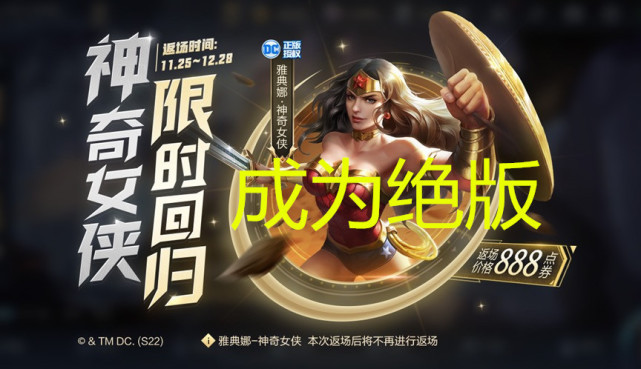 相信很多玩家在峡谷中很少看到雅典娜的这款“神奇女侠”皮肤,老玩家应该知道雅典娜是“献祭流”的创始人,而神奇女侠是一款授权皮肤,该皮肤虽然是史诗级品质,但是建模和服饰非常地超前,也是受到不少男玩家的喜欢,天美已经官宣,该皮肤本月25日到28日进行最后一次返场,返场售价是888点券,这也就意味着“神奇女侠”将会成为绝版皮肤,喜欢这款皮肤的小伙伴可以留意一下,错过了就真的没有拥有的机会了。