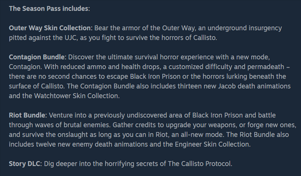 距离科幻恐怖游戏《木卫四协议(The Callisto Protocol)》发售仅剩几天时间,各种相关信息也逐步公开。近日,开发商Striking Distance Studios公布了该作的季票内容,其中包含新模式、剧情DLC以及13种新的主角死亡动画。