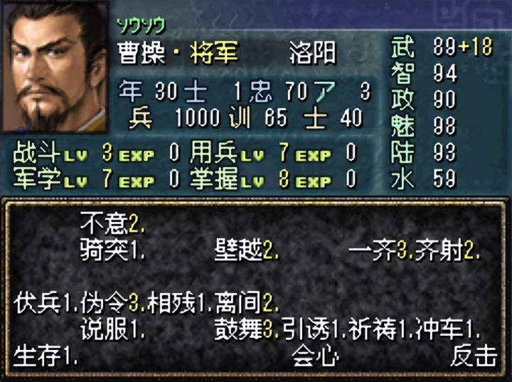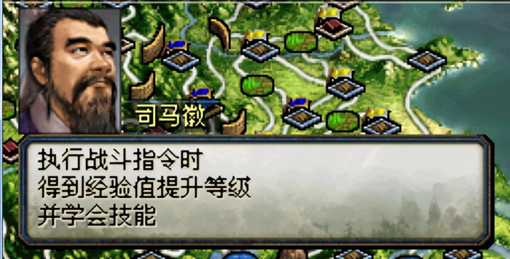 说到技能,在此作是可以成长的,就如同下图司马徽所述,通关提高经验值就能提高等级可以学会新技能或技能升级,简直就是《霸王之大陆》的升级版(93智力以上经验升级会增加计谋技能,此作还有攻击技能)。