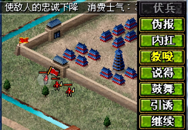 相比勇将擅长的【攻击】的新玩意,同样智将的【计谋】也不少,在传统的火计、伏兵、说得、同士、伪报之外,增加了灭火、教唆等,例如大火是在以前火计上有所增强,可以以对方为圆心发动更大范围的火计;灭火则是扑灭身边的火;更牛逼是祈祷可以降雨进行大面积灭火,司马懿说这个可是为他而设的(参考三国演义的葫芦谷);还有挑拨可以引诱对方向我方靠拢3格,便于我军一起围攻等等丰富的计谋,例如下图的“冲车”就是其中之一。