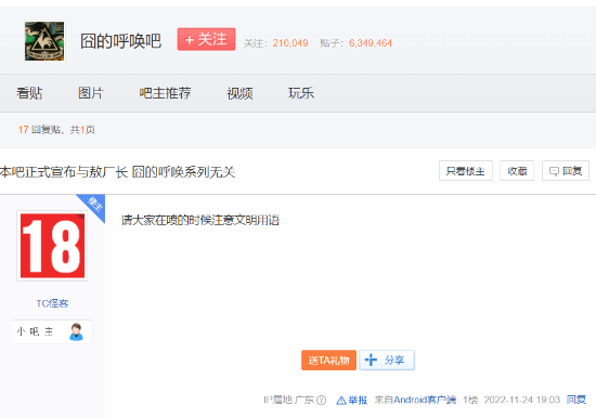 评论区也有不少用户认为敖厂长这次的视频内容欠妥。随后,百度贴吧囧的呼唤吧小吧主也发文,宣布“囧的呼唤”吧与敖厂长无关。