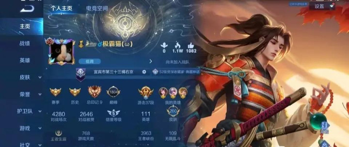 这是一名v10玩家,玩了两年多的时间,前后也就打了4280场,英雄是111个,皮肤不多,只有260个。