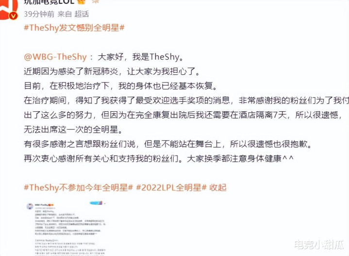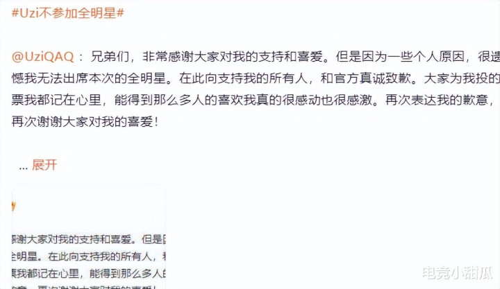 不过这次不管是Theshy还是UZI,都发了声明,不会来参赛了,很可惜,理由都是无法抗拒的,一个是身体原因,另一个大概率是合同原因,很无奈。