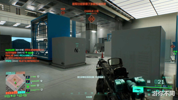 其中C2是一个比较坚固的建筑,玩家守住几个口就可以了,也是战斗发生最多的地方,如果双方实力差不多的情况下,打着还是很爽的。