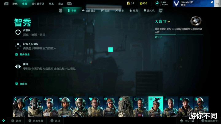 专家我都解锁了,不过我个人比较喜欢用的是智秀,原因是她的技能可能扫描出来一定范围内的敌人,在我对于将要去的地方不是很熟悉的时候我基本上都是会用扫描来先确定下敌人的大致方位,然后前进的时候会更加有安全感,并且如果占点时有敌人但是不知道具体蹲在哪里的时候也挺好用的,所以我基本上选择智秀配备拦截者板甲加扫描还是如果不是冲得很前面还是比较安全的,建议新手玩家可以去尝试下,在熟悉地图之后我一把基本上也能够击杀20-30个玩家左右。