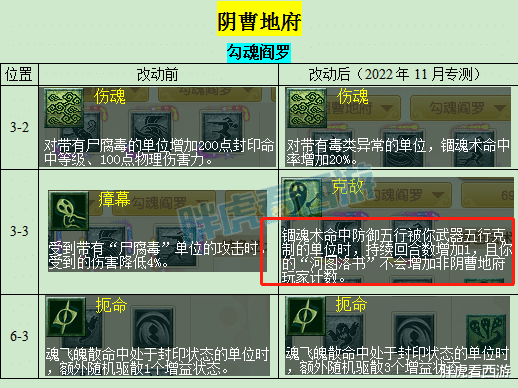 地府迎来了增强,小死亡有五行克制之时,持续回合+1。