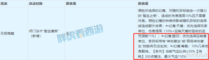 策划没有忘记女魃墓,新增师门技能誓血魔祭:牺牲幻魔,对随机目标施放一次强力的誓血之祭。
