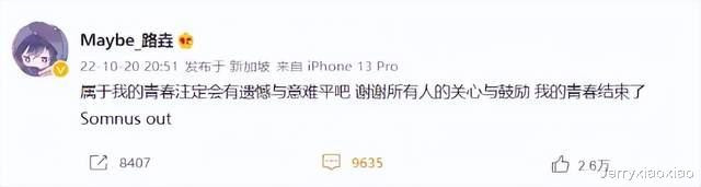 也许是累了,也许是倦了,又或者是年龄的问题,Maybe在赛后,就发布微博宣布退役:属于我的青春注定会有遗憾与意难平吧 谢谢所有人的关心与鼓励 我的青春结束了 Somnus out。