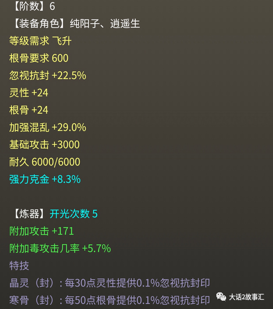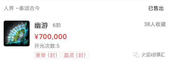 首先来看看这件70万元成交的6阶仙器,底子是忽视抗封22.5,蓝字和炼器都毫无特点。为什么能卖70万元呢?看看特技,晶灵封和寒骨封。这样的几率确实非常难得!一旦炼器洗出了较高的忽视抗封,妥妥又是一件百万物资。