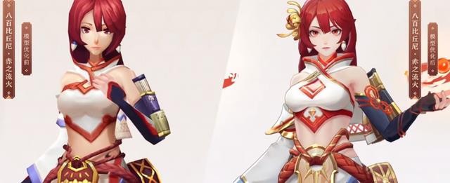 官方对八百比丘尼皮肤'赤之流火'进行了模型优化,全面提升了皮肤细节与质量,不过由于CV档期原因,后续官方将尽快补充皮肤日文语音,等待后续进一步的优化实装吧。