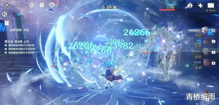 第四步:【切莫娜出来后开大】,划重点:莫娜大招是一个持续8秒的泡影,泡影会在8秒后爆炸造成水元素伤害,或者我们期间切班尼特出来用火元素攻击主动“捅破”泡影提前打出莫娜大招伤害。