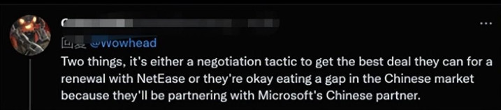 ——两个可能,要么这是与网易的谈判策略,要么是准备将游戏与微软的中国合作伙伴进行合作。
