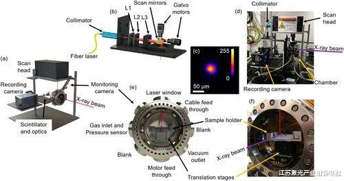 图2显示了LPBF系统的详细设计和照片。系统设计模拟了典型LPBF构建中存在的条件,同时仍允许足够的X射线透射以高采样率探测熔池内和周围的区域。单模1070nm、500W连续波(CW)光纤激光器(IPG Photonics,Oxford,MA,USA,YLR-500-WC-Y14)直接耦合到3轴检流计扫描镜系统(Nutfield Technology,Hudson,NH,USA,3XB 3轴扫描头)。扫描头将工艺激光聚焦到衬底表面上,并引导激光穿过衬底,以形成LPBF工艺所需的移动熔池。