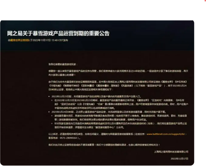几天前,暴雪娱乐官方宣布与网易的代理到期,但没有达成最新协议。同时,暴雪还表示,2023年1月,包括《魔兽世界》在内的许多游戏将在国家服务中停止服务。