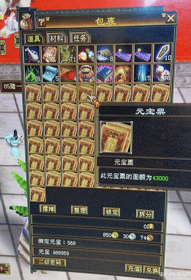 还有这位身上带着近一百万元宝,还有一仓库的元宝票,小编就想问一句,大佬还却挂件不?