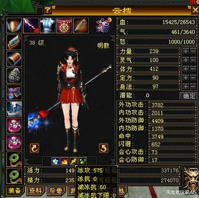上来打造了一个独树一帜的卡38级冰明教!先上一下面板,虽然它并不重要:血量2.6万,外功攻击3782,命中3749,闪避652,会心攻击73,会心防御17,冰攻击575~