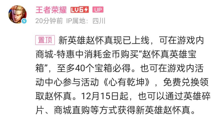 赵怀真已经正式上线了,虽然刚上线才只有两个获取渠道,但都不算是太难,花点时间或者花点金币都是可以拿到这个英雄的。但万一你不想浪费时间,又不想花费金币,那么可以等到月中,也就是12月15号的时候,那时候会开放赵怀真的其他获取方式。