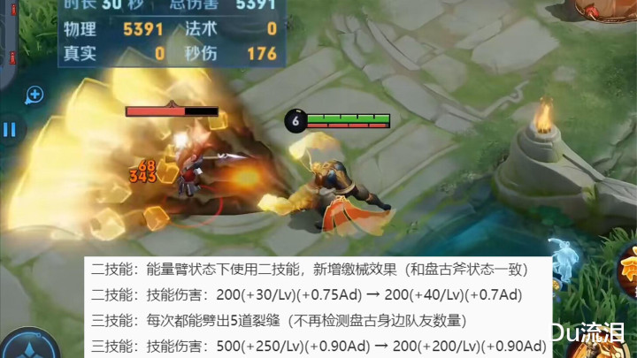 二三技能的变化不大,现在的二技能在拳头状态下也能进行缴械;三技能的话现在每次都能劈出5道裂缝,不管盘古周围有没有队友,另外在拳头状态下现在也能释放大招了。