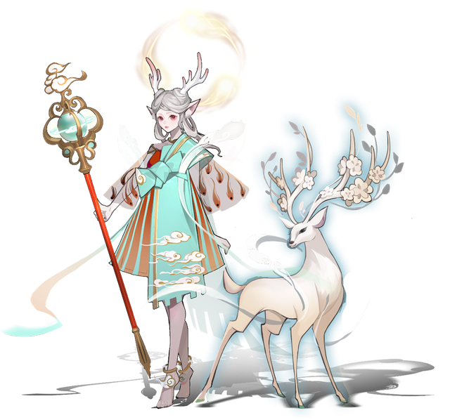 比如瑶的遇见神鹿皮肤,就是以莫高窟257窟中的《九色鹿本生》为设计主题,色彩上,密陀僧色搭配白绿色,具有非常强烈的冷暖对比,还采用了最能代表敦煌文化的绿松石色作为修饰,服装设计上,参考了古代服饰,再与敦煌文化结合,设计成了更具敦煌风格的单边形式,整体上既不失神性,又有瑶本身的灵动活泼感。
