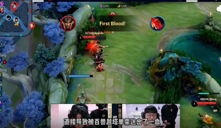 这局AG前期就出现了不该有的失误,忆安的吕布和百兽的蒙恬单挑,在已经被打成残血并且交出闪现的情况下,还是贪了一波兵线,直接导致被百兽单杀。