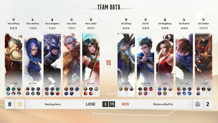 十二分钟,武汉eStar直接抱团冲高,先行一换三后带暗影先锋直破水晶,拿下比赛!两局比赛加起来不足26分钟,这实力的差距实在是有点大啊!