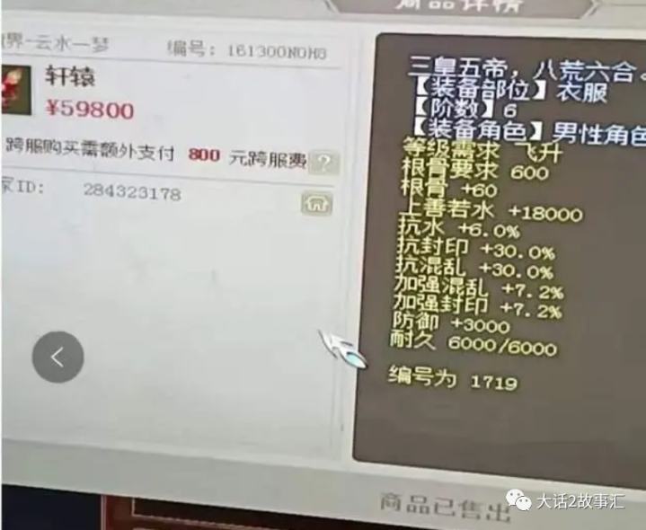 云水一梦的一件六阶仙器衣服售价才59800元。底子是双抗冰混60点,加强混乱加7.2,根骨加60。要知道现在的五阶仙器平均价格也在3万多元了,按照六阶仙器的合成成本,这个价格简直是捡漏。