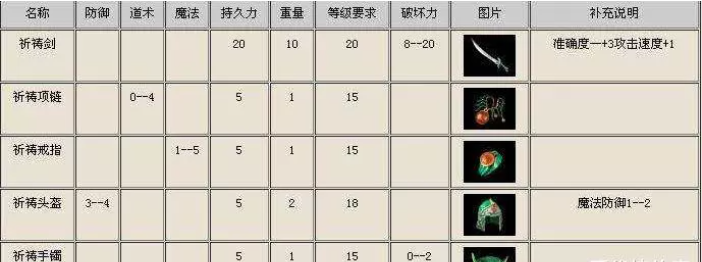 老玩家都知道无论什么职业都可以装备祈祷套的,祈祷套有祈祷之刃x1、祈祷头盔x1、祈祷项链x1、祈祷手镯x1、祈祷戒指x1、其余不限,一整套下来很大几率可以打出致命一击,据说可以秒掉血量3500以上的战士,整套属性在打怪的时候也是有效果的。