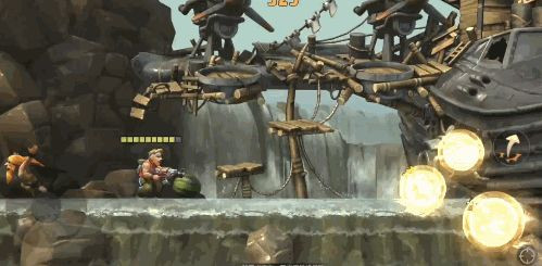 《合金弹头:觉醒》相较于街机时代的2D像素画面,带来了更加精致化的细节表现,像莫丁小绿兵调笑时的神情,脸颊与头盔之间的分界线,人质老头被解救后掏出的衣物褶皱,大和战舰精密排列的火炮轮廓以及碾压过地面时产生的碎屑等,让潜藏于系列中的神韵得到重现。
