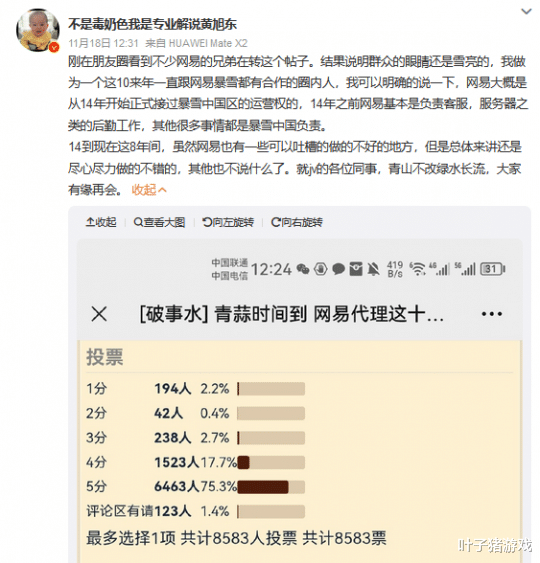 知名星际解说黄旭东,跟大家的意见基本一致,并为这个投票贴专门发了个动态:他认为从2014年开始,正式在暴雪手中接过中国区运营权的网易,确实算是做得不错的了。