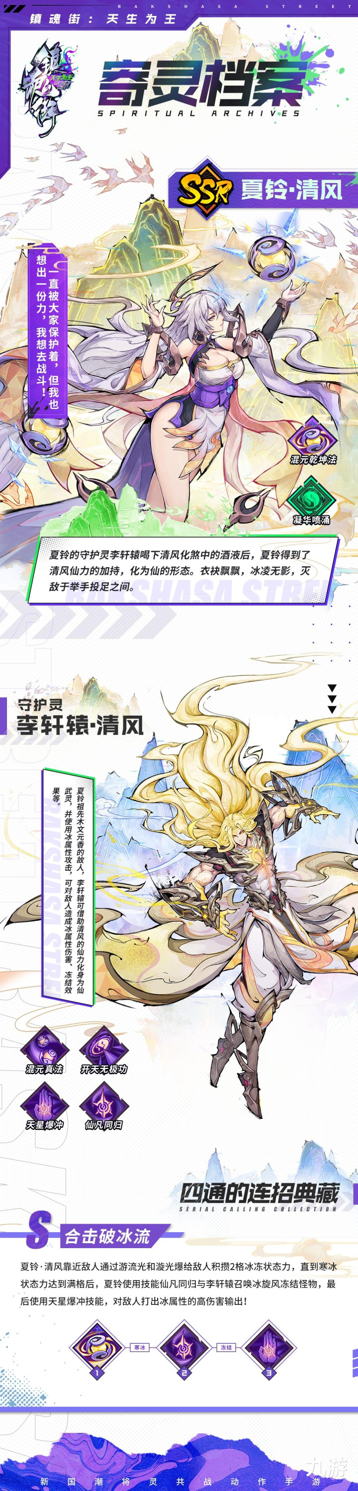 爆燃国漫IP正版授权,3D国潮动作手游《镇魂街:天生为王》将于12月22日正式上线,近日官方放出头号女主夏铃在游戏中的形象和技能,本期将为大家带来全新角色—— 夏铃·清风, 以及仙武灵形态的守护灵李轩辕·清风!下面让我们一起来了解下吧。