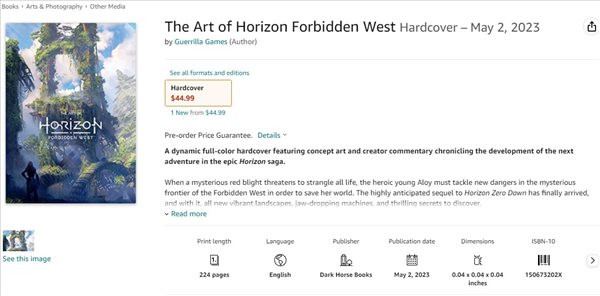 说起来,玩家们都在催促着《艾尔登法环》快出DLC,其实与之几乎同期发售的《地平线:西之绝境》DLC也毫无动静,可没见粉丝着急催。近日,游骑兵工作室宣布将与DarkHorseBooks合作,推出《西之绝境》官方艺术集,将于2023年4月发售。