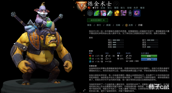 其次,英雄的身板,虽然炼金的大招有回血机制,但是他的护甲是真的低的离谱,没有装备的支撑是不够看的,一旦炼金陷入团战,开不出大招和BKB,基本是被对面直接瞬秒的节奏,在没有经济碾压的情况下,很难在团战中打出应有的效果。