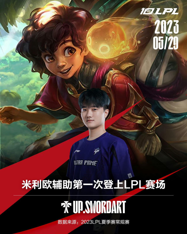 2023年5月29日,UP.SwordArt选出米利欧辅助,此为该英雄第一次登上LPL赛场。