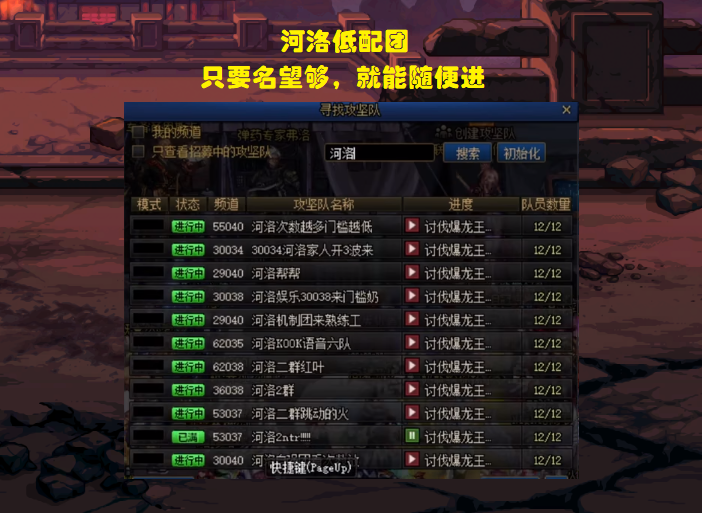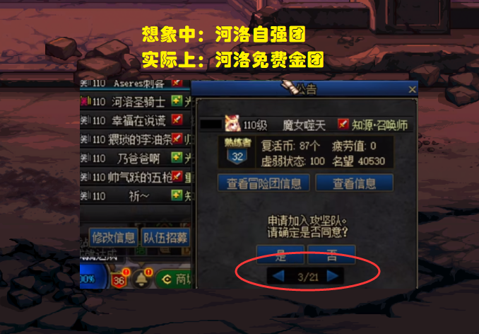 甚至还衍生出了一种现象,只要你在队伍名称前面带上“河洛”2个字,即便你根本就不在河洛群里,依旧会有无数萌新小号慕名申请,至此,“河洛团”达到巅峰!