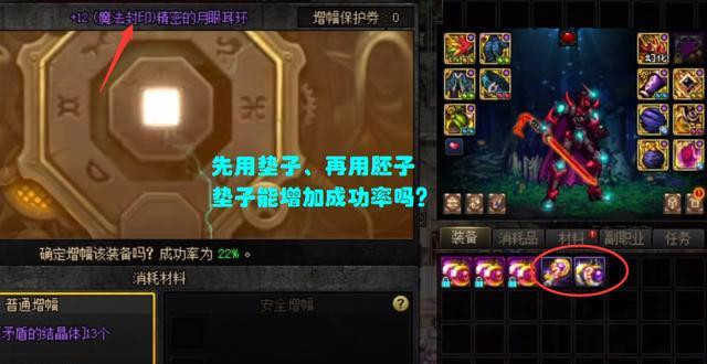 有玩家提到:如果直接把2万件红12装备拿去增幅,完全不用垫子,有没有希望冲上红18呢?有没有可能恰好就是垫子的存在,把本该成功的几率转移到了垫子上,而导致胚子装备没上去呢?