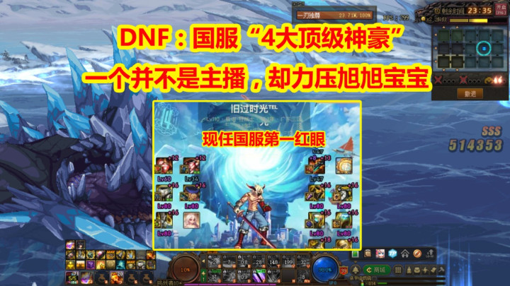 #地下城与勇士#说起地下城的顶级神豪玩家,现在必然是主播了,毕竟不直播直接氪金的真爱粉,已经很少了,用爱发电的也只剩下似雨幽离、小萝卜头和旧日时光了。这三位1个直播不接广告,就是为了和玩家分享,另外两个都不直播,但是都拿到了职业第一人的称号,而旧日时光更是在近日,超越旭旭宝宝拿下第一红眼的称号。那么目前国服顶级神豪玩家都有哪几位呢?