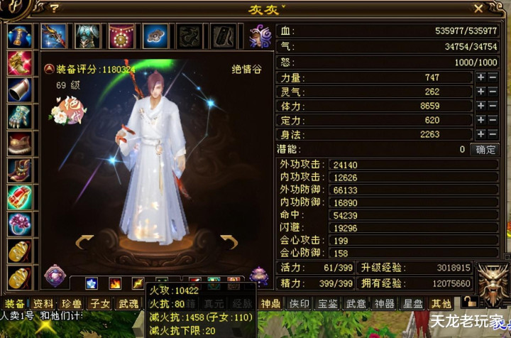 虽说比起如今的满级玩家而言,这个面板像过家家,但是各位老铁,你们要知道这可是个69级的号,没有龙纹、没有令牌、没有侠印、也没有真元等等高等级玩法。