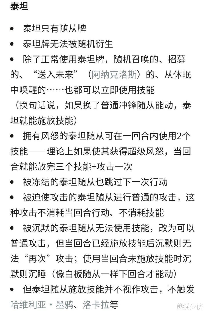 三个效果有buff有软件有过牌,本身效果配合八血生存能力强,骑士泰坦是目前六位泰坦中存活能力最强的。