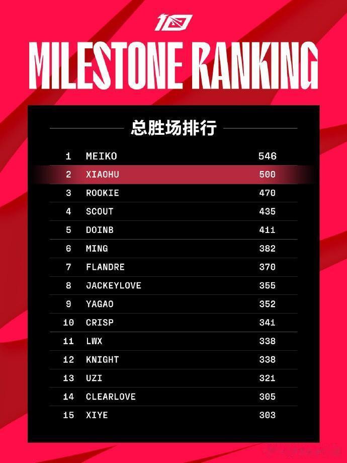 LPL500胜场大关突破,排在小虎前面的只有一个人,那就是Meiko!Meiko现在真的是咱们LPL的活化石了,保持着助攻榜和胜场榜的双料头名,后面的选手估计很难超越了。