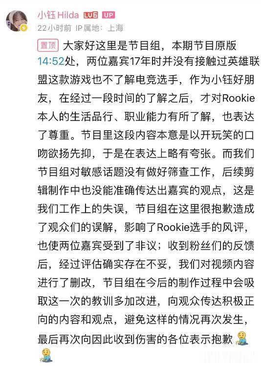 这番话引起粉丝不满,面对舆论压力,小钰第一时间删剪视频,并且发文致歉:我的闺蜜不了解这款游戏,以后不会出现类似的不妥。