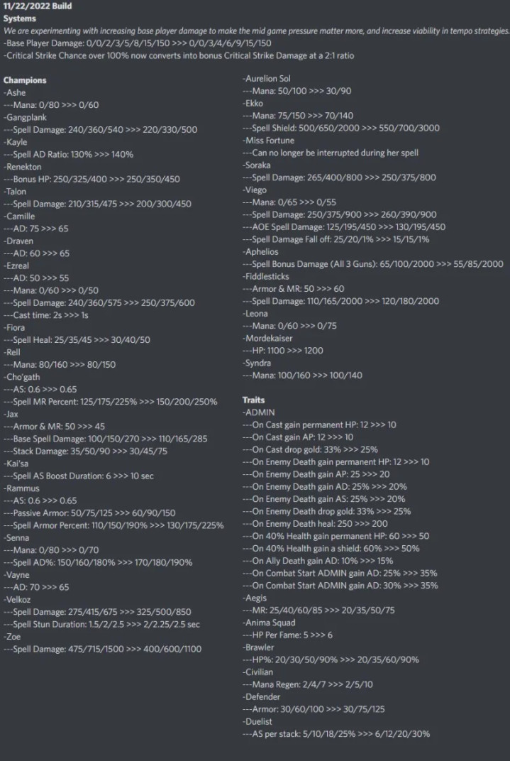 虎扑11月23日讯云顶之弈首席设计师Mortdog透露了23日云顶美测服改动,其中英雄部分改动内容如下: