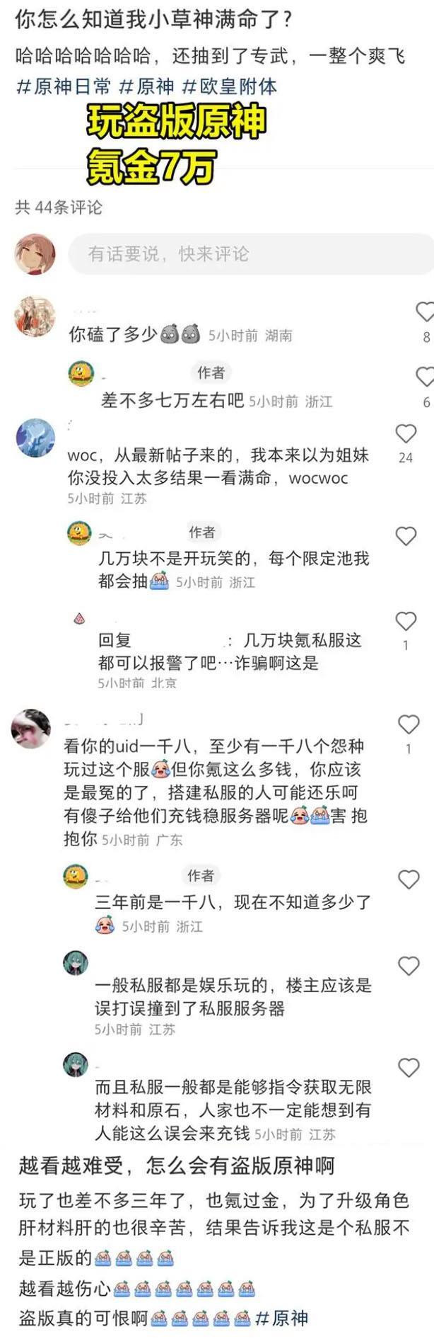 两年氪了七万,本以为是大佬,结果玩了盗版《原神》
