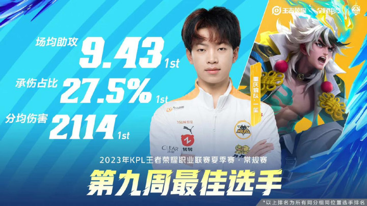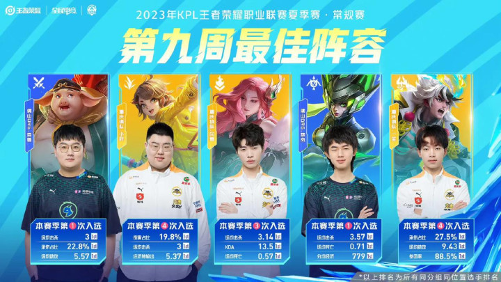 KPL第九周最佳阵容来了。狼队和DRG包揽,也是常规赛末期状态最好的两支队伍了,都提前锁定了胜者组。一笙最佳选手,照这个趋势下去有可能要拿常规赛MVP啊。