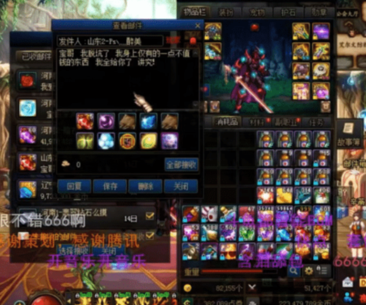 而这名玩家虽然发送的脱坑内容很少,但在弃坑前这名玩家也是把身上值钱的东西都给了宝哥,旭旭宝宝看到这里也是非常感动的,于是收藏了这三封特别的邮件。宝哥也是希望这些玩家能有回归的那一天,并许下了一个回归承诺,如果这些玩家回归了的话那么宝哥绝对会是大力支持的。