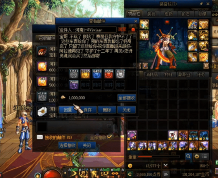 为了纪念这段游戏时光,有些玩家会在脱坑前发邮件给游戏好友道别的,而一些玩家则是会发邮件给旭旭宝宝告别。毕竟旭旭宝宝作为地下城第一人,其同时也是一名已经玩了十多年的老玩家了,对于旭旭宝宝大家也是非常有好感的。而在脱坑前,这些玩家会把身上值钱的道具装备都邮寄给旭旭宝宝,这也算是另外一种延续吧,旭旭宝宝也是承载着这些脱坑玩家最后的信念继续玩下去了,帮这些玩家继续守护着赛丽亚。