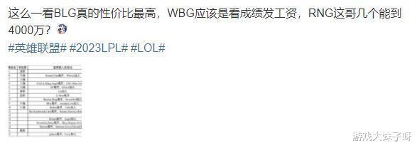 而BLG可以说是性价比最高的战队了,他们投入不多,只投入了2700万,但是却拿到了春季赛的亚军,msi亚军,还有成为S13的二号种子,之后在世界赛还要大显身手,以这个价格拿到这个成绩,真的是非常不错的成绩。