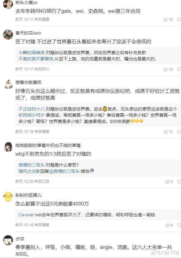 排在第二名的理应是WBG,因为他们组成了四位世界冠军加上近几个赛季表现优秀的灯皇,如果按照正常的签约费来看,他们绝对是5000万以上的投入,但是俱乐部和选手们达成了对赌协议,拿到好成绩才能拿到全部工资,如果没有拿到好成绩,可能还没有中游战队的工资高。
