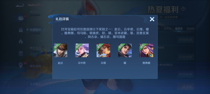 正式服在本周上线了一个【热夏福利】活动,该活动一共免费送出五位永久英雄,其中福利4的奖励中就有永久英雄:赵云!!!要知道这位英雄之前只能通过充钱获得,这下豹子头零冲都可以免费拿到了,只需要在指定时间发送指定口令到世界频道即可。